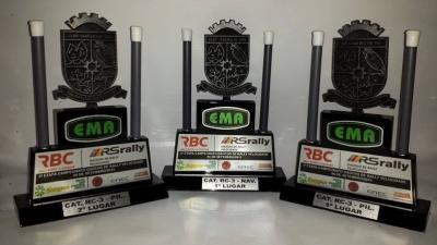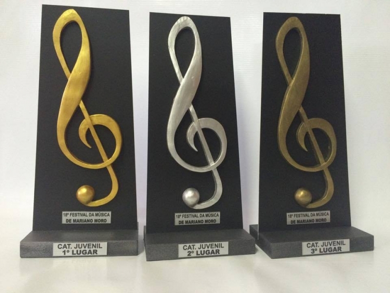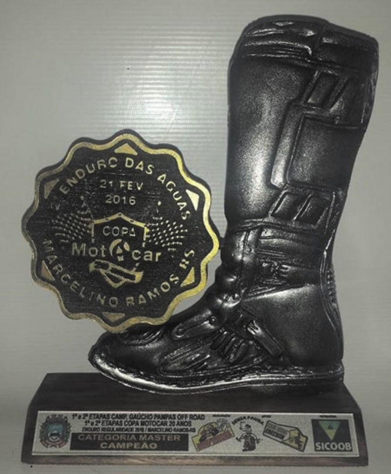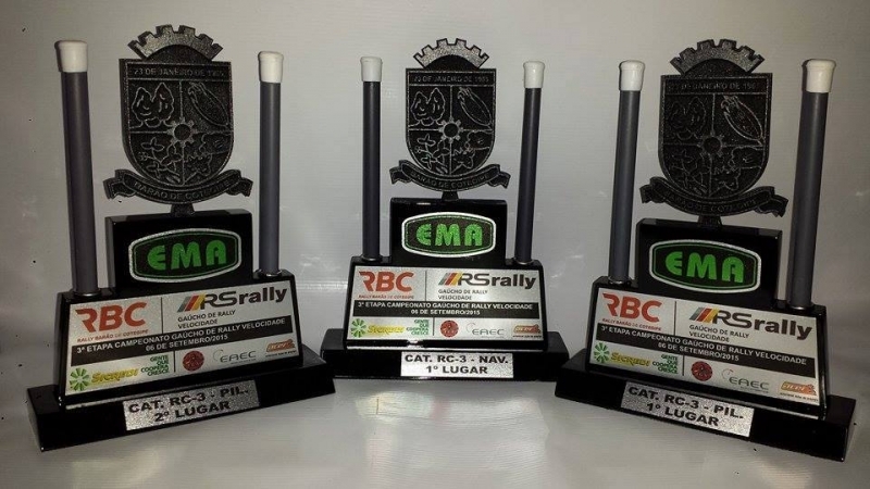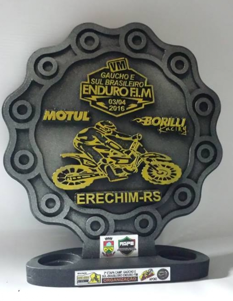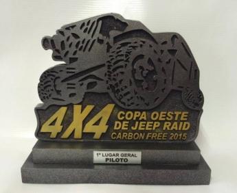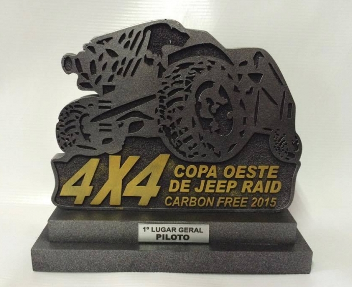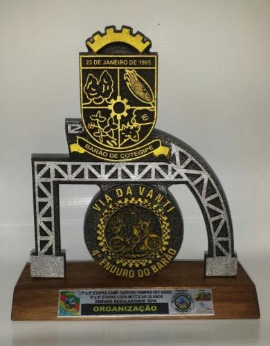 Base em madeira, com etiqueta p/ informações do evento, e patrocinadores....