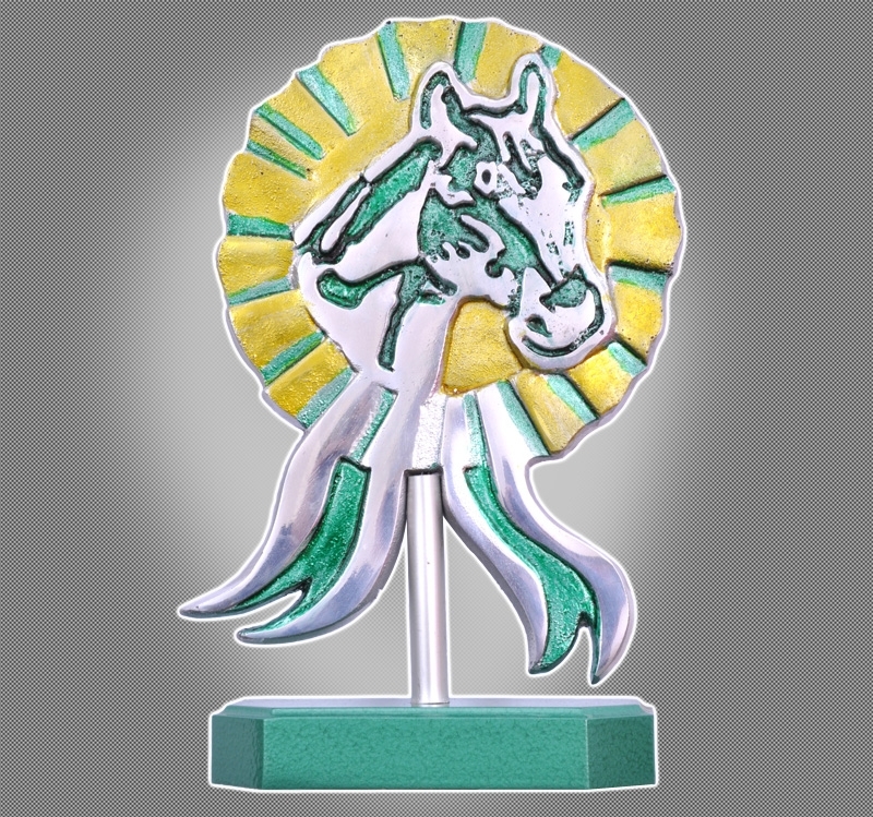 Alumínio fundido, polimento alto brilho, acabamento vitral, base madeira mogno c/ forração anti risco, etiqueta p/ informações....